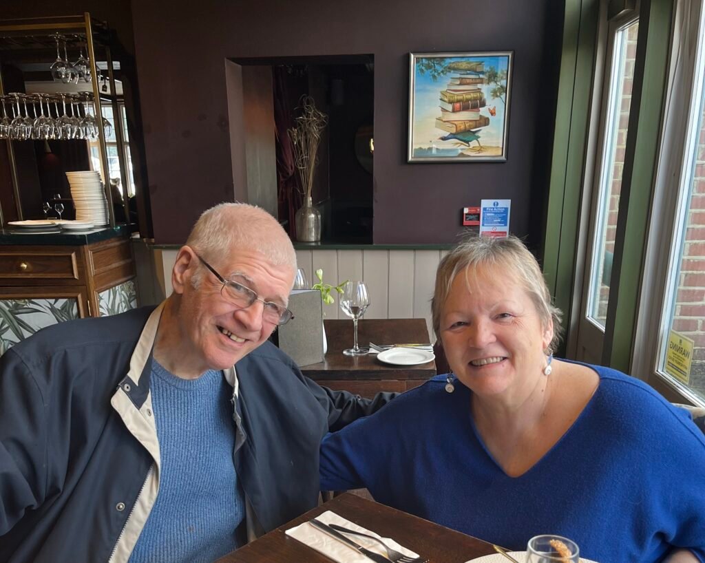 Here is a photo of us a year ago celebrating our Wedding Anniversary.