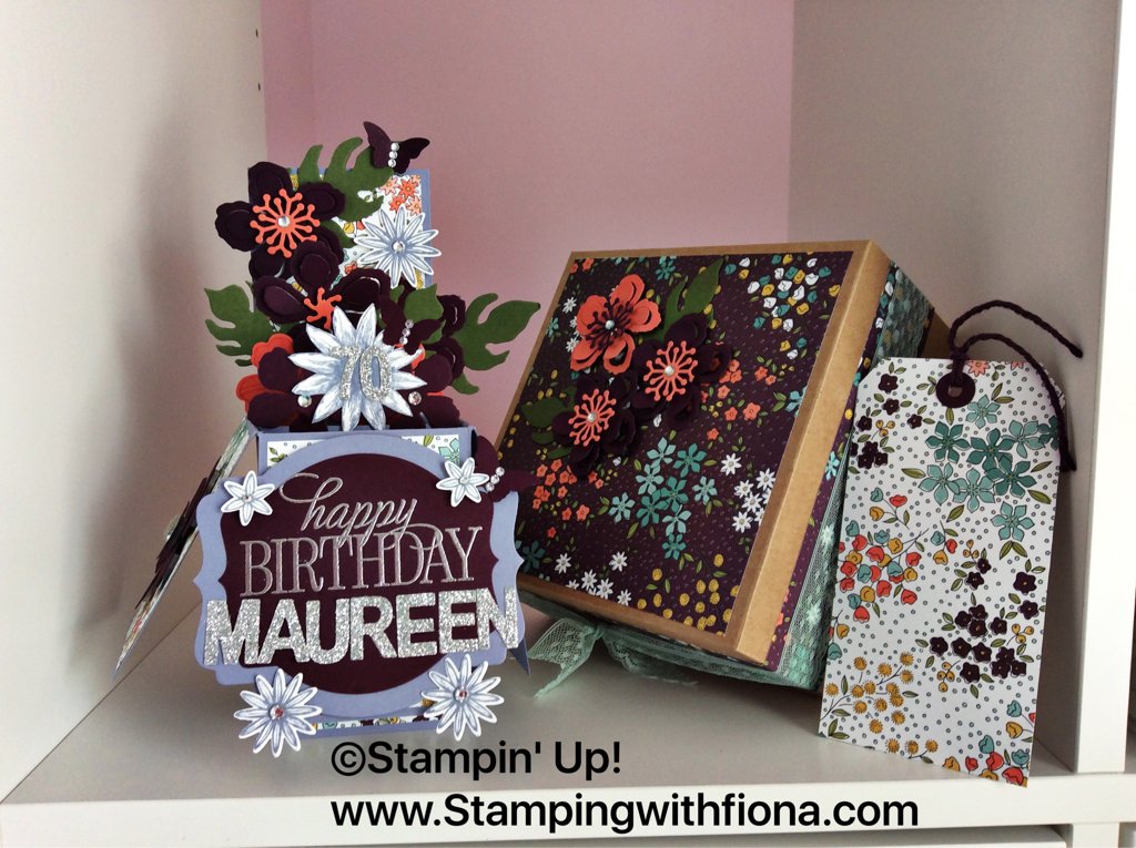 Hi Everyone, I wanted to show you the Card in a Box matching set that I made for m y brother to give to his good friend for her birthday. I used the Wildflower Designer Series Paper and use the Botanicals dies for the 3d effect, along with the Grateful Bunch stamp set which I then punched out. The request was for purples and reds, and it took me three attempts to get the card colours right. I started with a Blackberry Bliss base with the darker shades of paper, I thought it was too dark so that went out the window. Then I tried the dark paper with Watermelon Wonder and it just didn’t look right so onto card number three! This time I went for the lighter base of Wisteria Wonder with the lighter shades of paper and used the Blackberry Bliss and Calypso Coral card stock for the Botanical flowers. The request was for a ‘subtle’ ’70’ so I die cut the ‘Little Numbers’ and placed the silver ’70’ onto the Wisteria Wonder Grateful Bunch flower. My brother was really pleased with them and said he can’t wait to give them to his friend, I really hope she likes them!