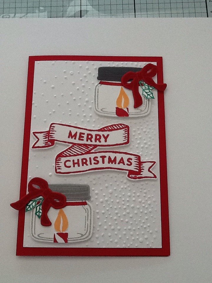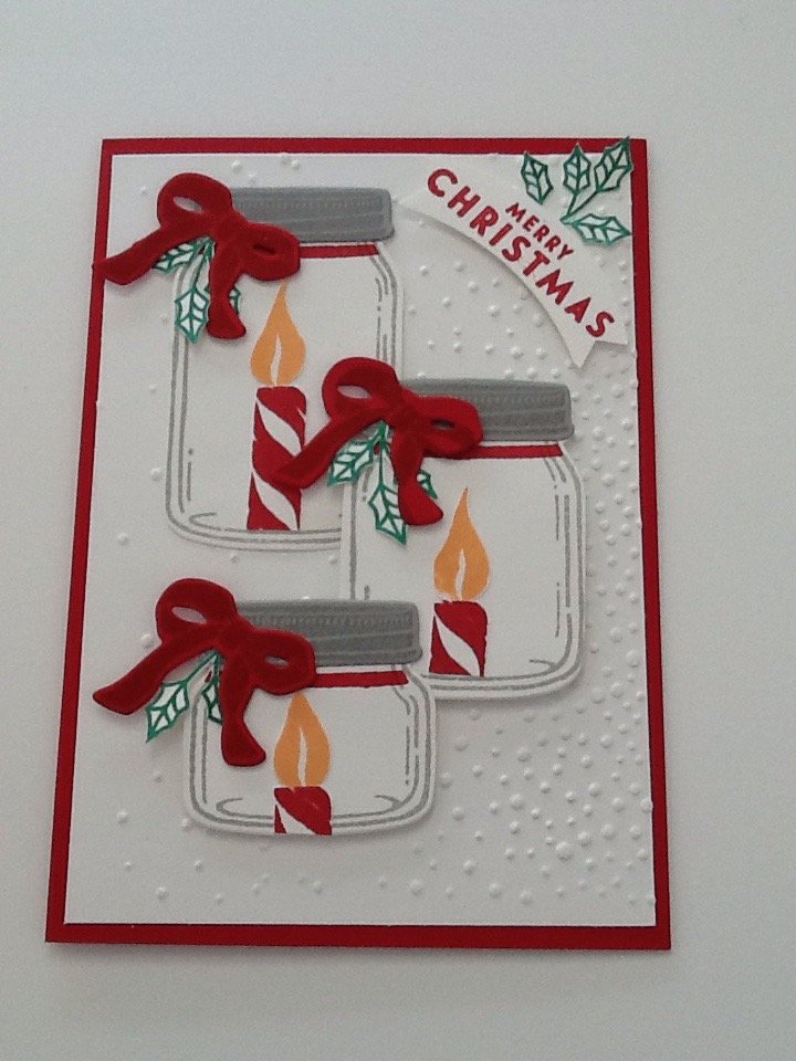 The Jars of Love (card 3) I cased from Billie Moan, I love it although there is quite a lot of work with stamping, die cutting as well as fussy cutting so I don’t think it would work for a large batch of cards. Card 2 is my own creation, I wanted to see how the Banners would work with the Jars and I’m really pleased with the outcome. There’s still die cutting but not so much fussy cutting. Which one do you prefer of the three cards – I would love you to leave me a comment below.