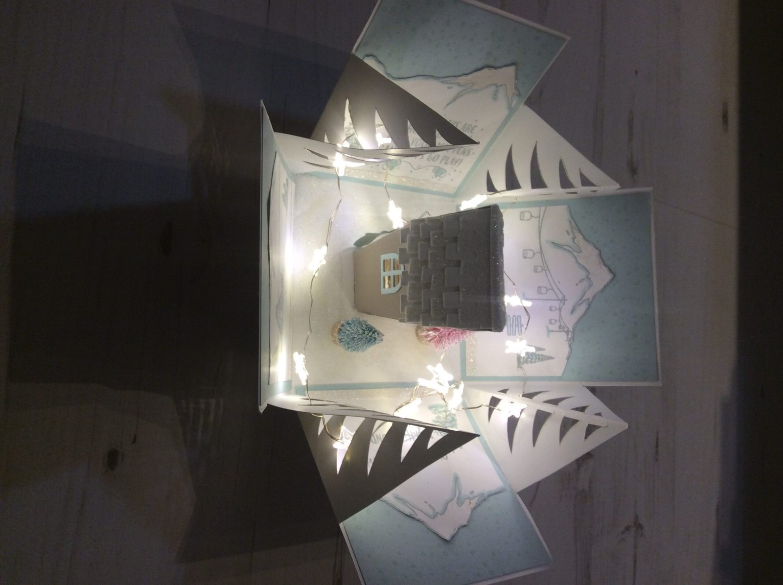 On a completely different note I went to a class earlier this week to make an Alpine Resort in A Box. This was originally created and designed by the wonderfully creative Charry Wijers. Everyone who saw it said ‘WOW’ and a few of us asked Charry to run a class. It was a full day class, oh so worth the effort though, I am absolutely thrilled with it, Thank you so much Charry.