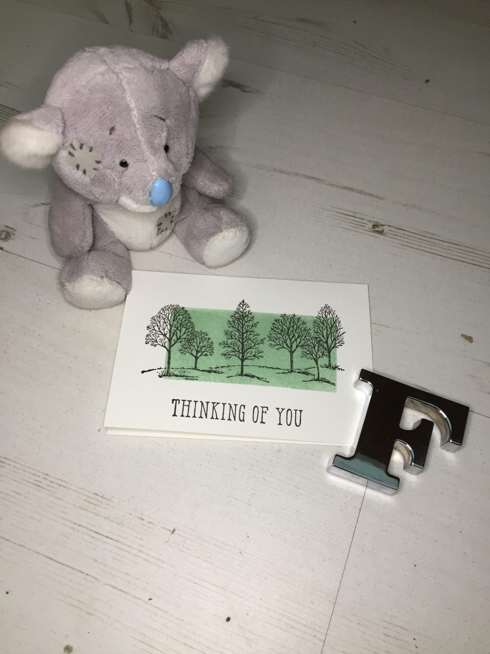 I stamped the image and sentiment with Black ink, the arranged Post It notes around the images to protect the card. Using a Sponge Roller and returning colour Mint Macaron, I inked across the trees. When the Post Its were removed I was left with a focus point and a Clean and Simple card.